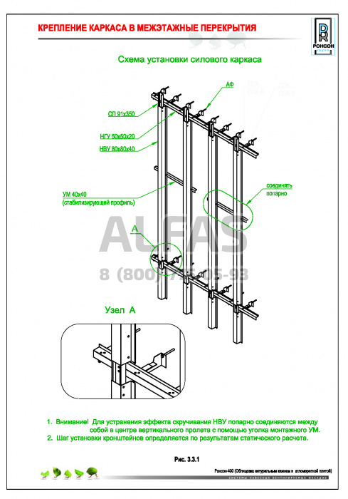 Возможна система крепления как по всей поверхности стены, так и исключительно в межэтажные перекрытия.
