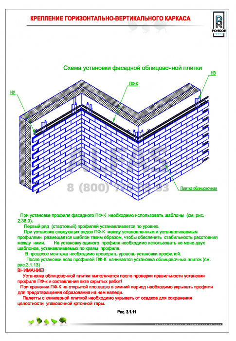 Возможна система крепления как по всей поверхности стены, так и исключительно в межэтажные перекрытия.